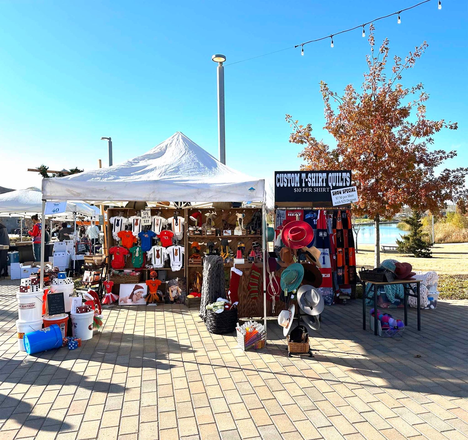 See our Burned Hats alongside Bee Cultivating's Inspirational Shirts next to the fountain