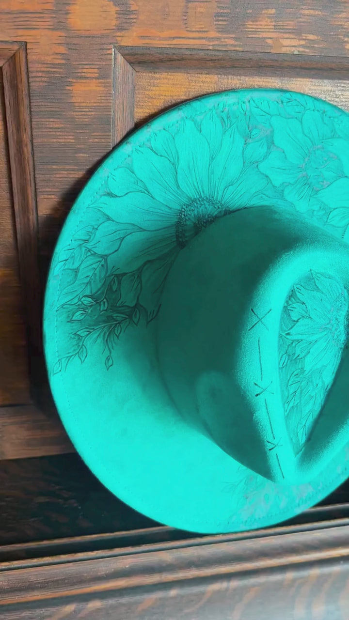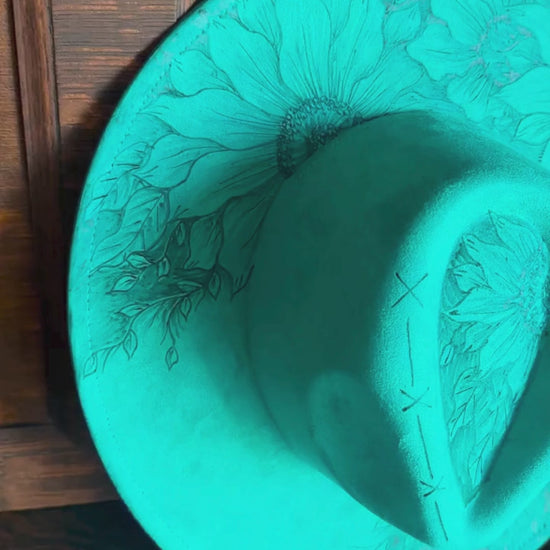 Turquoise Reverse Burn Sunflower Suede Burnt Hat